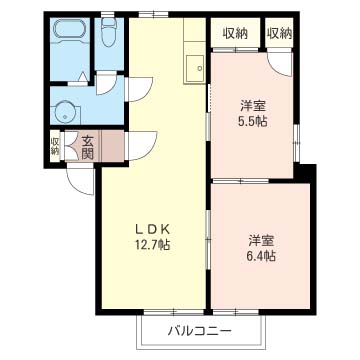 ▽間取りはリビングが12.7帖ある2LDKタイプです