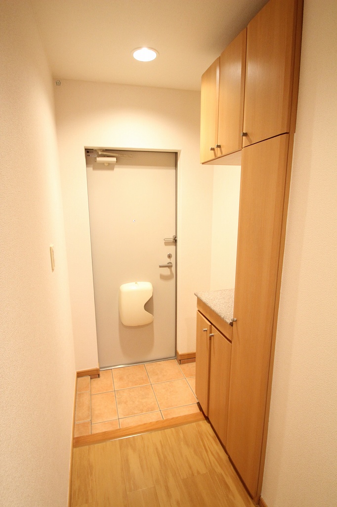 脱衣スペースも広く、シューズボックスも大きめのものが備え付けられております