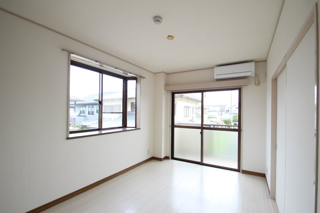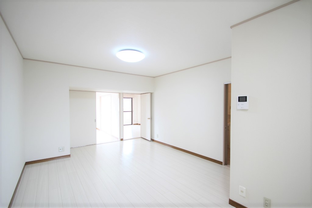 南向きで日当たりも良好。床も白いので日中の室内は眩しいくらい。