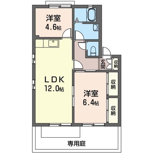 間取りはリビングが12帖もある2LDK