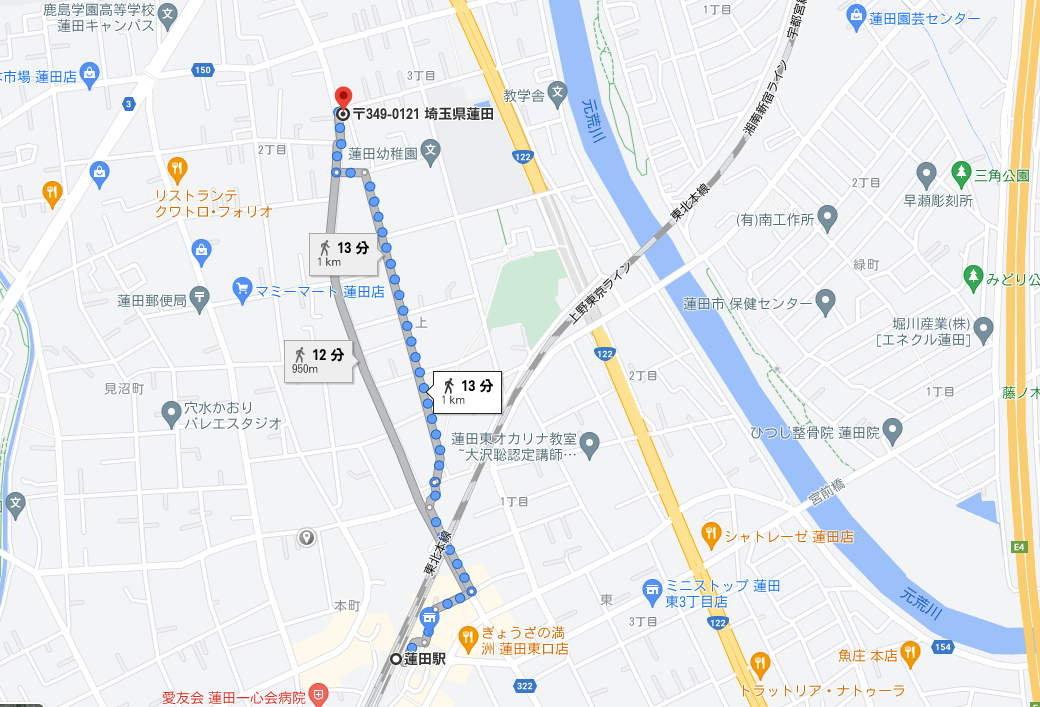 蓮田駅にはこちらの道をほぼまっすぐ進みますと着きます!