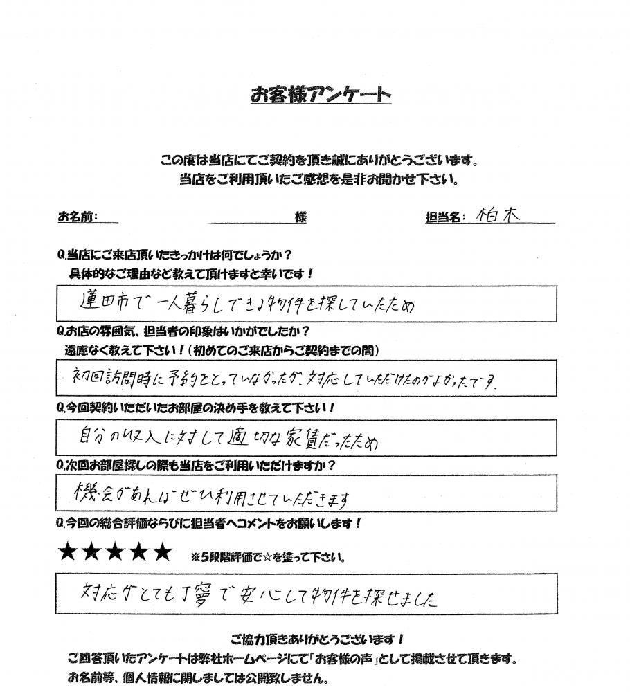 この度はお部屋のご契約を頂き有難うございました。